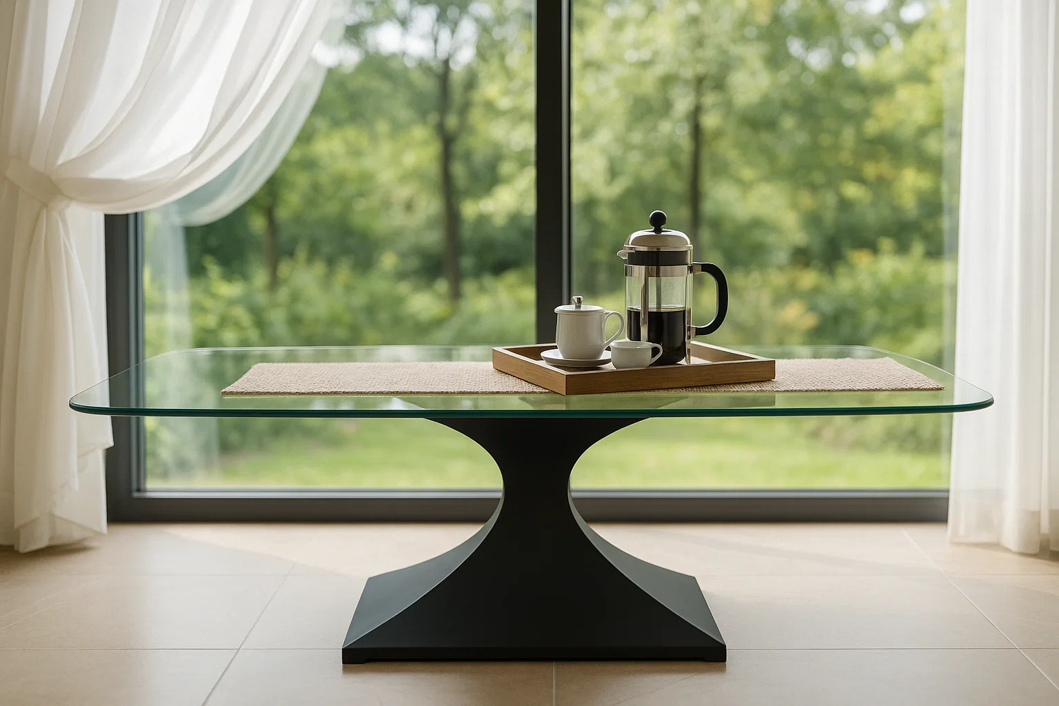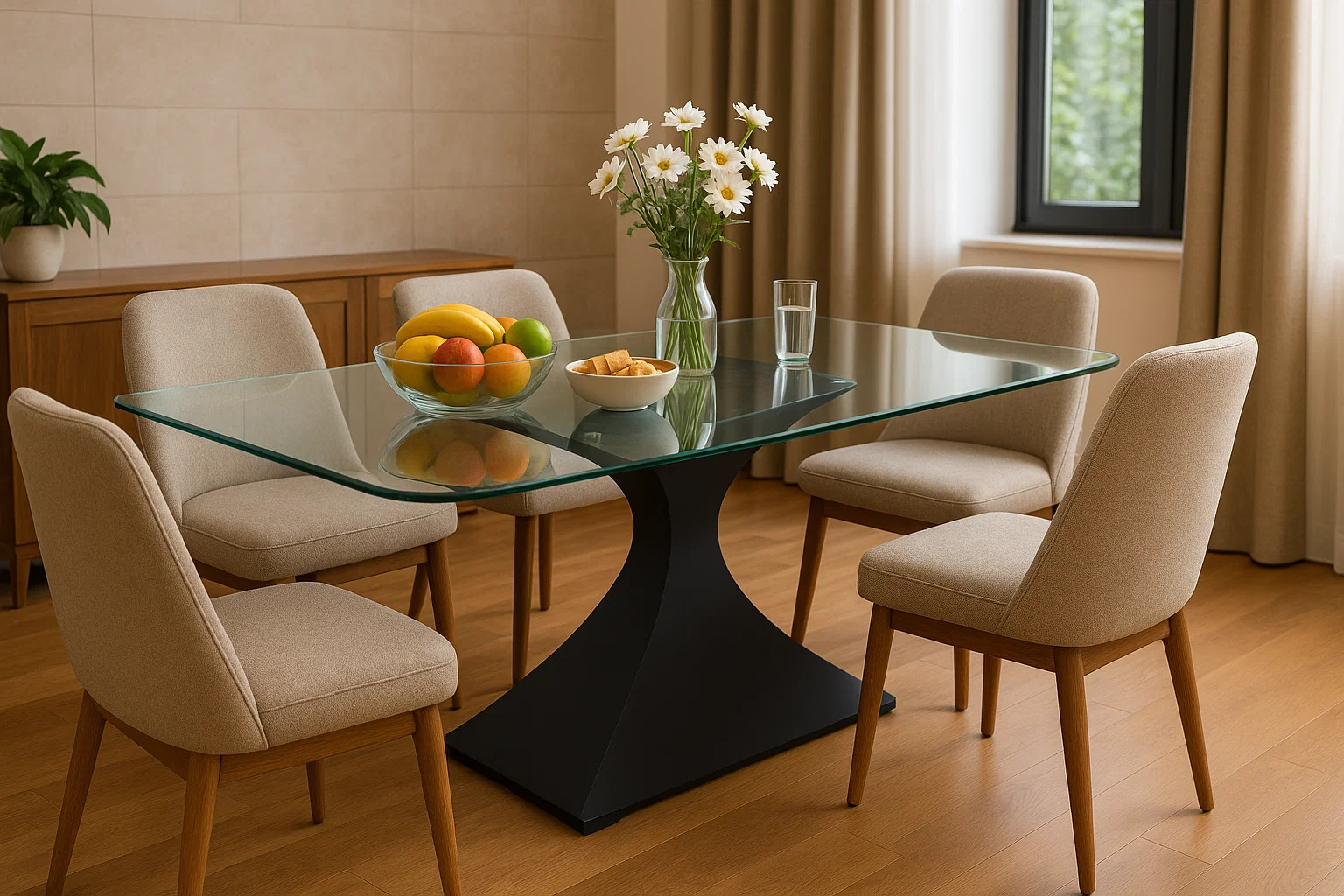 The Architonce Dining Table is the epitome of contemporary sophistication. Designed for modern interiors, this table features a crystal-clear glass top supported by a sturdy mild steel base with a sleek powder-coated finish. The transparent surface adds a sense of openness, while the geometric frame lends architectural interest. Ideal for minimalist dining rooms and open-concept spaces, this table is as much a design statement as it is a practical dining solution.