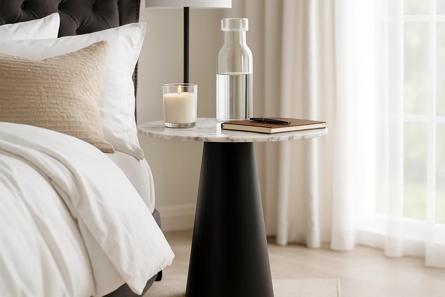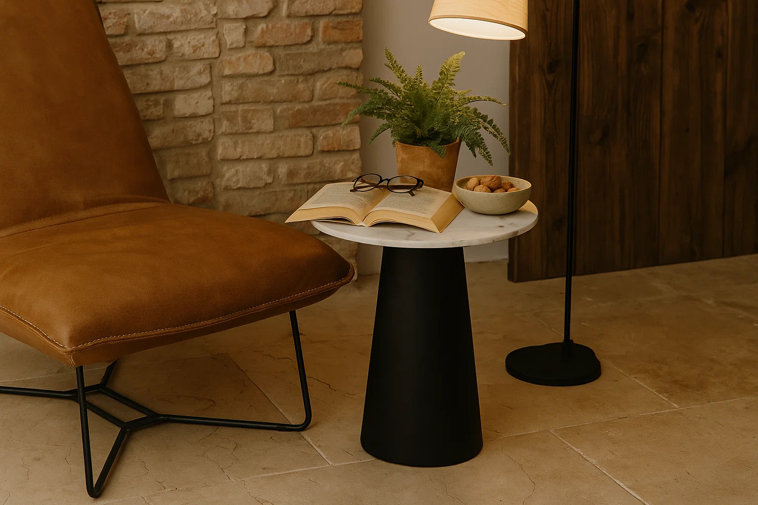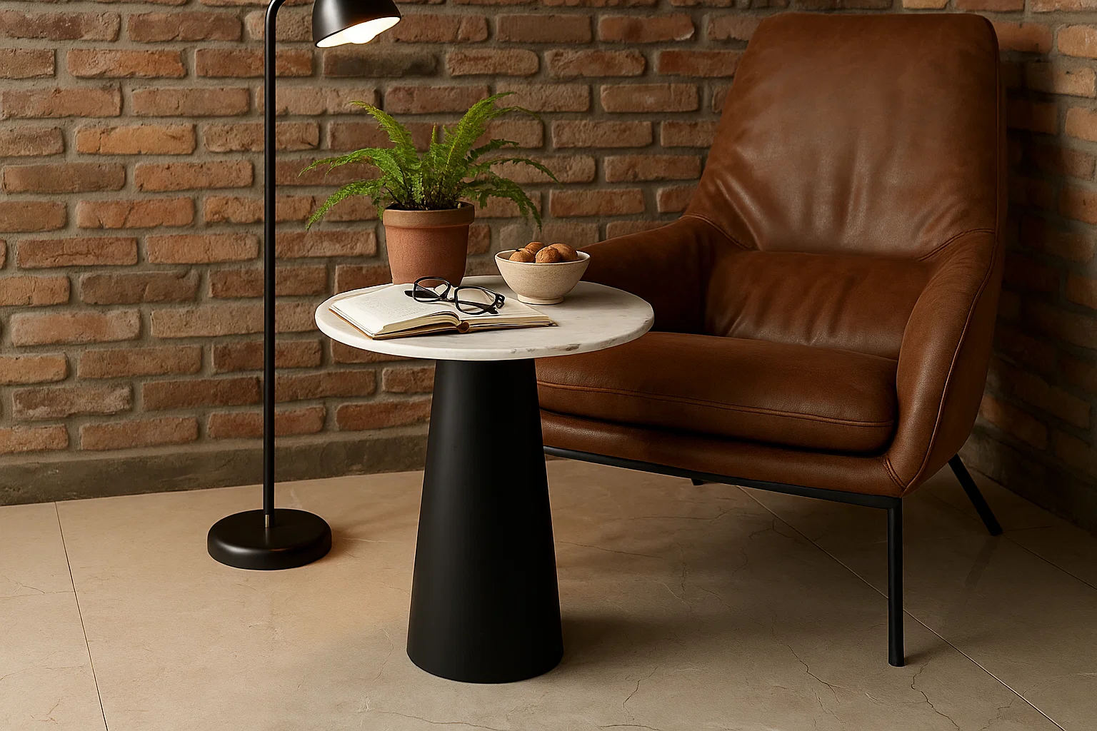 Clean, compact, and classy—this single-piece nest table makes a chic statement in modern homes. Designed with a circular white marble top and sleek black steel base, it offers minimalist elegance for side seating or corner styling.